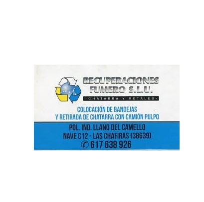 Recuperaciones Fumero es una empresa joven, ubicada en el sur de Tenerife, que ha nacido del constante esfuerzo, que año tras año han querido dedicarle sus fundadores. Dedicados inicialmente a la recuperación de chatarras, la empresa a ido creciendo y evolucionando hasta ofrecer soluciones medioambientales a las empresas y organismos públicos sin querer olvidarse del pequeño productor que nos vió nacer.